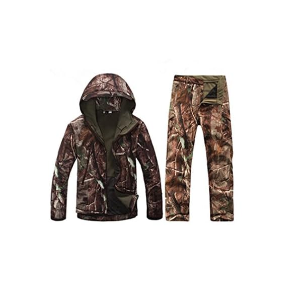 SportsInn Men Hunting Camouflage Clothing Waterproof Windproof Softshell Hooded Jacket & Pants Set