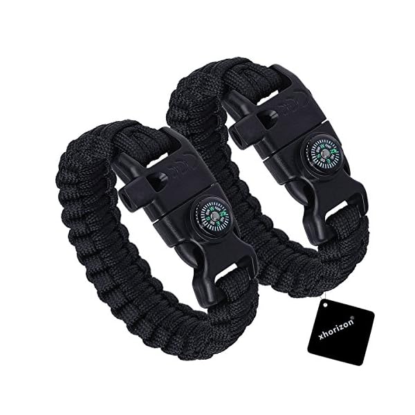 2 Packs Survival Kit Paracord Bracelet, xhorizon TM SR 5 in 1 Survival Kit Paracord with Compass, Flint Fire Starter, Emergency Knife & Fire Scraper, Emergency Whistle – Great for Hiking Camping Gear