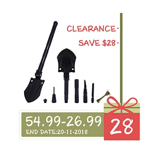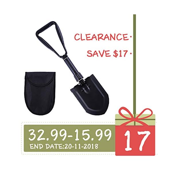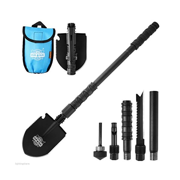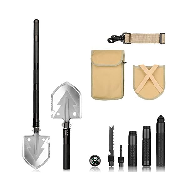 FSDUALWIN Military Folding Shovel, Multifunctional Collapsible Gardening Snow Shovel/Army Camping Shovel with Portable Carrying Pouch – Best Survival Trenching Tools – (Black)