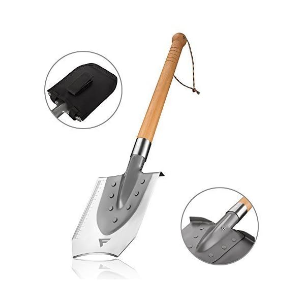 FiveJoy Portable Trench Shovel for Gardening, Camping, Metal Detect, Off-Road, Emergency (J2) – Hard Wood Handle, High Carbon Steel Blade – Excel in Digging, Chopping, Prying – Great to Keep in Trunk