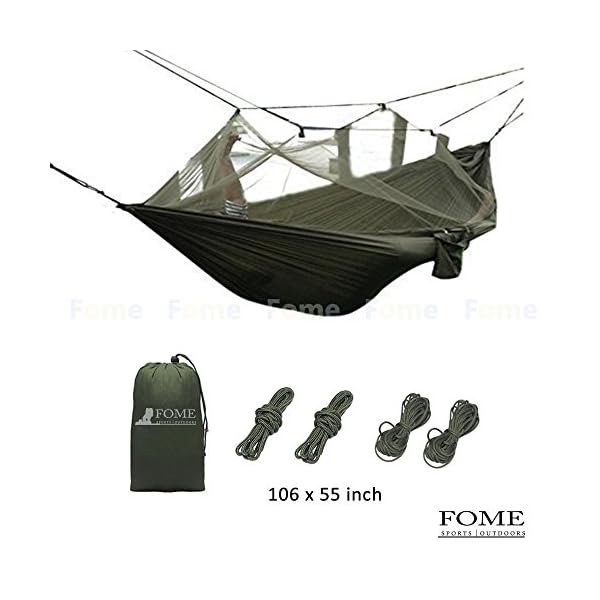 Camping Hammock, FOME SPORTS|OUTDOORS NEW VERSION Large Size Portable Parachute Fabric Hammock Hanging Bed With Unremoveable Mosquito Net 106 x 55 inch 440lbs Capacity for Backpacking Travel Yard