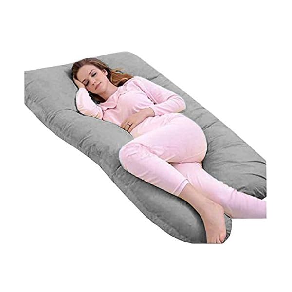 Meiz Unique U-Shaped Pregnancy Pillow – Full Body Maternity Pillow for Side Sleeping – Come With Easy on-off Zippered Velour Cover (Grey)