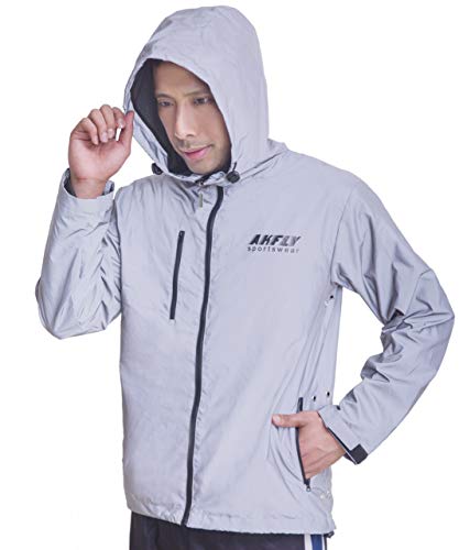 AKFLY Waterproof Jacket with adjustable Hook & Loop,a high visibility reflective silver design for safety,2 zipper pockets and 1 chest pocket for save your key,card or iphone