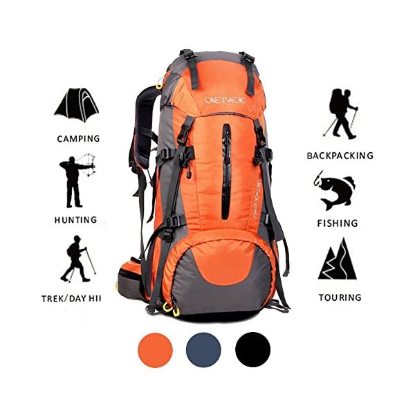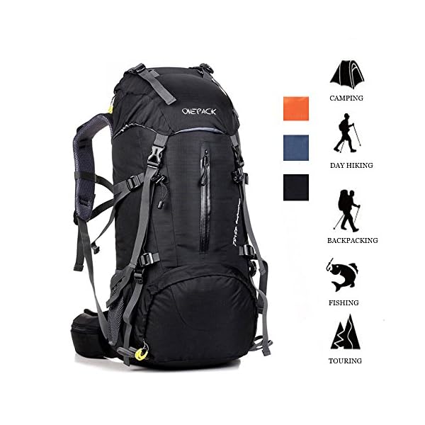ONEPACK 50L(45+5) Hiking Backpack Travel Daypack Waterproof Backpack Outdoor Sports Daypack with Rain Cover for Climbing Camping Mountaineering Fishing Traveling Cycling Skiing