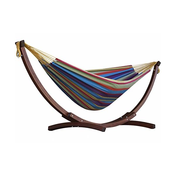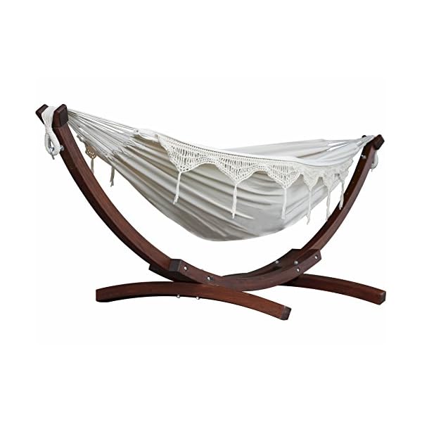 Vivere 8.5′ Double Cotton Hammock with Solid Pine Arc Stand