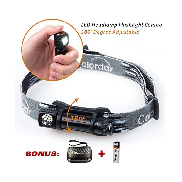 2 in 1 LED Headlamp Flashlight Combo, 150 Lumens, Ultralight Waterproof, 1.2oz, Compact, Full-metal body, for Running, Camping Hiking, Cycling, Kids,1 Energizer AA battery Included. COLORDAY