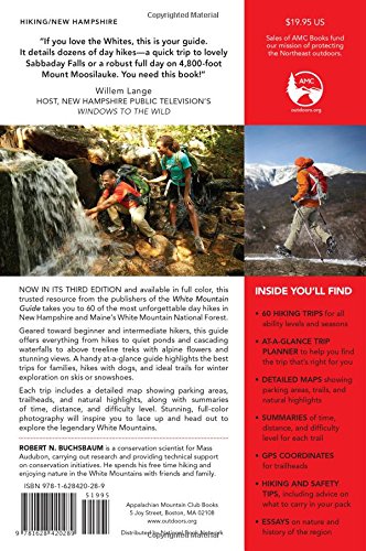 Fully updated and available for the first time in rich, full color, this trusted guide from the publishers of the White Mountain Guide will lead readers to 60 of the most unforgettable day hikes in the breathtaking White Mountain National Forest.Geared toward beginner and intermediate hikers, this guide has something for everyone, from family-friendly hikes to cascading waterfalls, to a challenging trek through Tuckerman Ravine and the Alpine Zone to the summit of Mount Washington. Readers can explore the region’s legendary notches―Crawford, Franconia, Pinkham, Evans―and take in the views from some of New England’s most picturesque and sought-after peaks along the Presidential Range. Each trip includes a detailed map showing parking areas, trailheads, and natural highlights, along with summaries of time, distance, and difficulty level. A handy, at-a-glance trip planner makes it easy to find the best trails for kids, dogs, and winter snowshoeing and skiing.ALSO AVAILABLEWhite Mountain Guide, 29e by Steven D. SmithISBN-13: 978-1-934028-44-5Southern New Hampshire Trail Guide, 4e by Steven D. SmithISBN-13: 978-1-934028-96-4White Mountain National Forest Map & Guide, 2eISBN-13: 978-1-934028-48-3