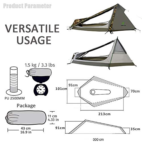 ➤VERSATILE USAGE – This lightweight 1 person tent measures 27″ x 83″ x 35″(W x L x H) which comfortably fits 1 people. Designed for use in spring, summer and fall, perfect for backpacking, camping, hiking, fishing, over night or weekend trip, sporting events, music festivals or for just relaxing in the back yard. The tent weighs just 1.5kg(3.3lb) and measuring just 17″ x 4″ x 4″(43 x 11 x 11 cm). Perfect for throwing in a backpack on your next trip!