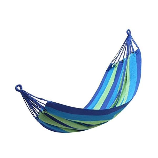 Yosoo 450lbs 110″*60″ Soft Double Person Wide Hammocks Durable Cotton Hammock For Outdoor,Traveling, Camping, Hiking, Backpacking Multicolor Stripe with Carrying Bag (Blue)