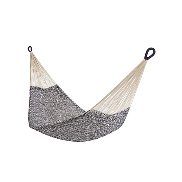 Yellow Leaf Hammocks-Montauk Natural Cotton Rope Hammock, Navy Plus Off-White