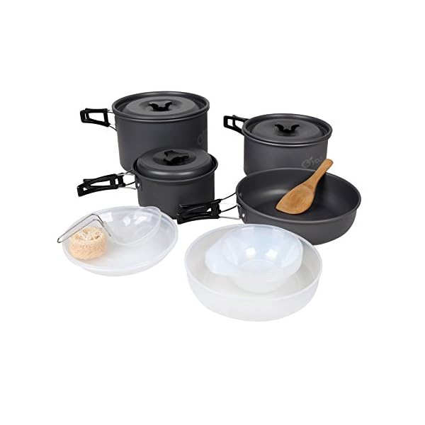 yodo Anodized Aluminum Camping Cookware Set Backpacking Pans Pot Mess Kit for 4-5 Person