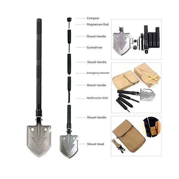 YaeTact Military Portable Folding Shovel, Multifunctional Collapsible Gardening Snow Shovel/Army Camping Shovel with Carrying Pouch, Multifunction Outdoor Survival Spade