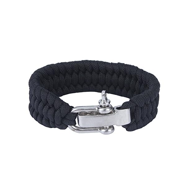 Yosoo Black 500lb Paracord Bracelet with Adjustable Stainless Steel D Shackle,Suitable for 7″-8″ Wrists, Multinational Survival Paracord Bracelet